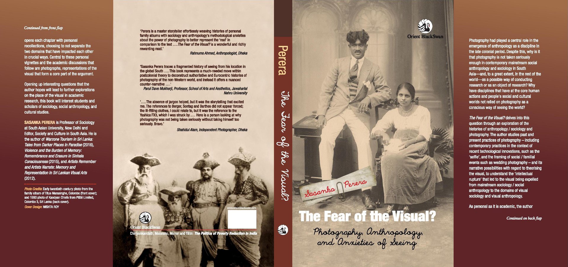 Perera, Sasanka. Fear of the Visual? Photography, Anthropology and Anxieties of Seeing (දෘශ්යත්වයට බියවීම? ඡායාරූප ශිල්පය, සමාජ මානව විද්යාව හා දැකීම පිළිබඳ ඇති සාංකා). නව දිල්ලිය: ඕරියන්ට් බ්ලැක්ස්වෝන් ප්රකාශන සමාගම, 2020. පිටු: 280. ISBN: 978-93-5287-995-3. මිල: ඉන්දියානු රුපියල් 850.00 (ඝන කවරය සහිතව).
